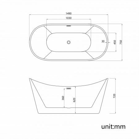 Cada acril freestanding ovala JUNO 150×72 cm